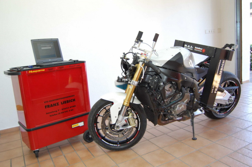 Mobile Motorrad-Rahmenvermessung an BMW S100RR