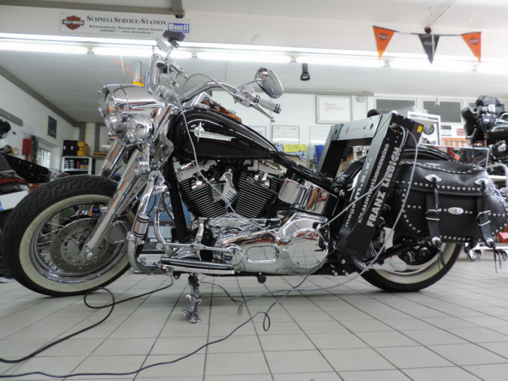 Mobile Motorrad-Rahmenvermessung an Harley Softail Classic