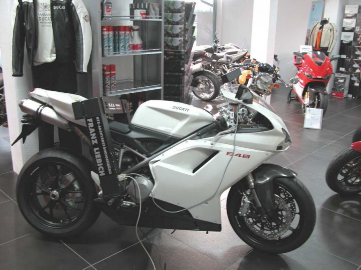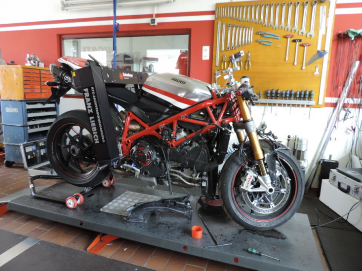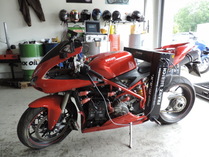 Mobile Motorrad-Rahmenvermessung an Ducati 848