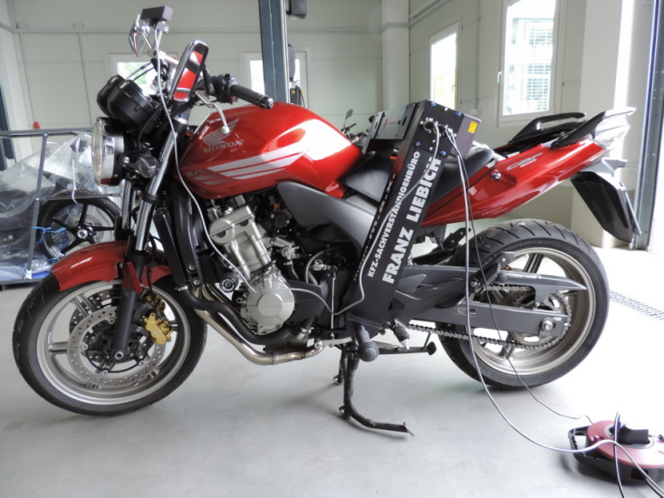 Mobile Motorrad-Rahmenvermessung an Honda CBF 600
