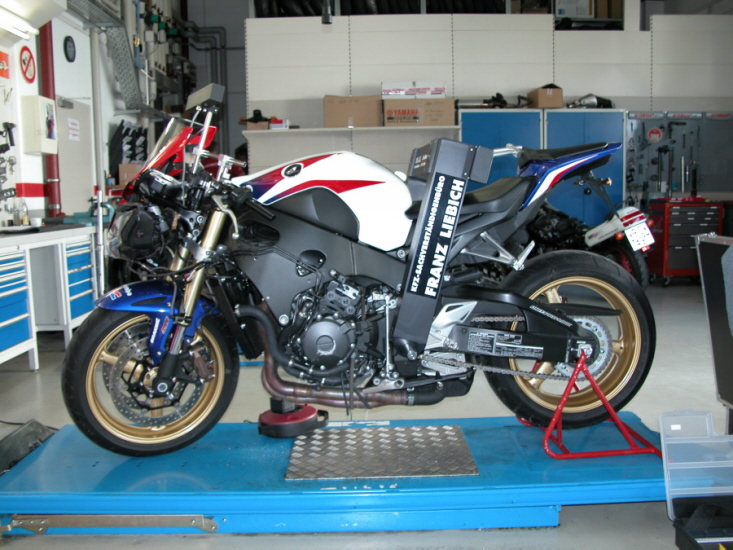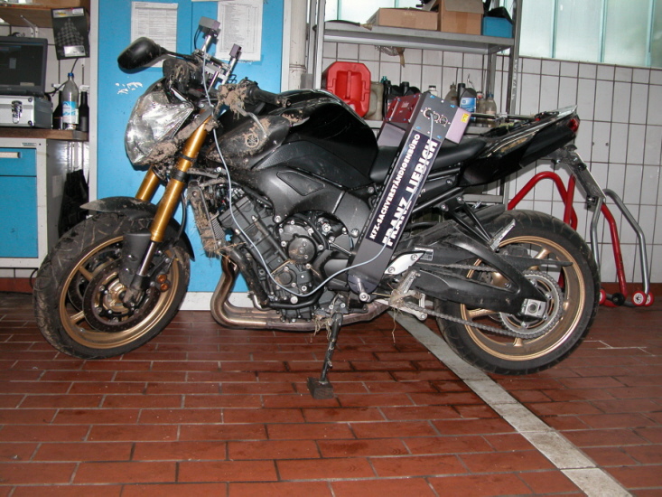Mobile Motorrad-Rahmenvermessung an Yamaha FZ8