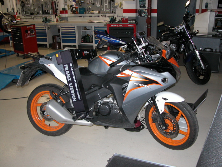 Mobile Motorrad-Rahmenvermessung an Honda CBR 125R