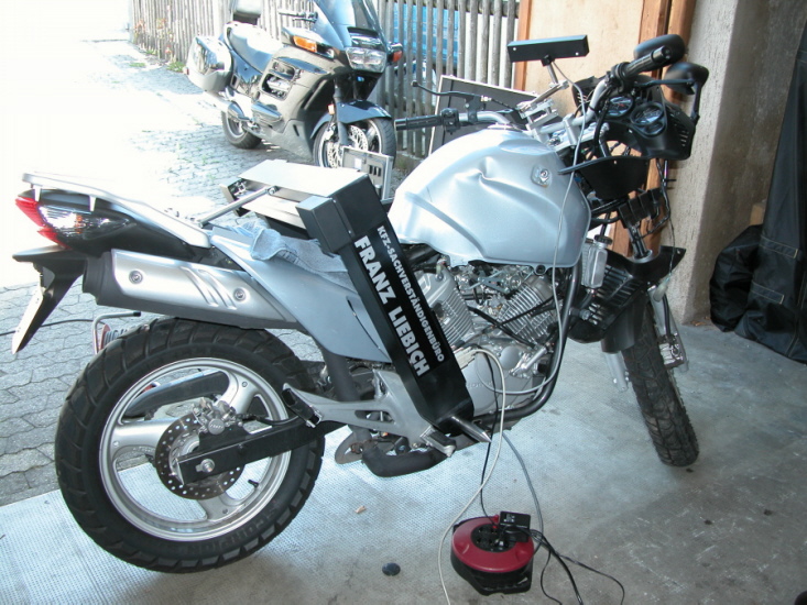Mobile Motorrad-Rahmenvermessung an Honda XL 125V
