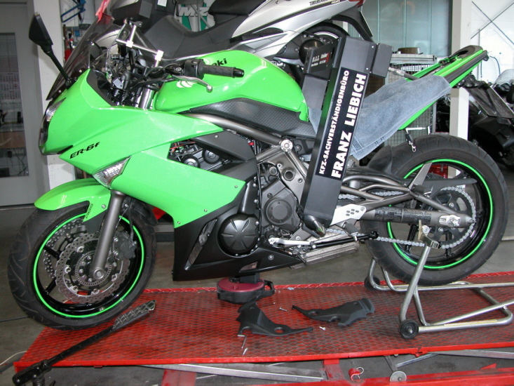 Mobile Motorrad-Rahmenvermessung an Kawasaki ER 6