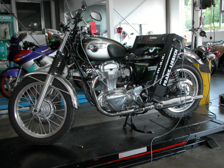 Mobile Motorrad-Rahmenvermessung an Kawasaki W 800