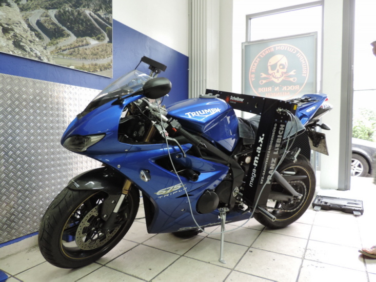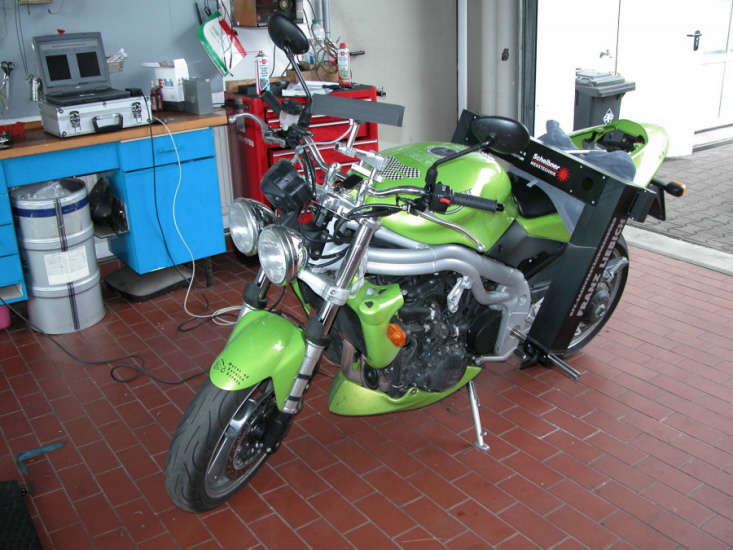 Mobile Motorrad-Rahmenvermessung an Triumph Speed Triple 955i