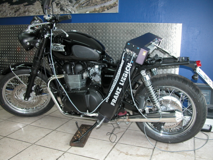 Mobile Motorrad-Rahmenvermessung an Triumph Bonneville
