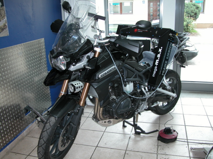 Mobile Motorrad-Rahmenvermessung an Triumph Tiger Explorer